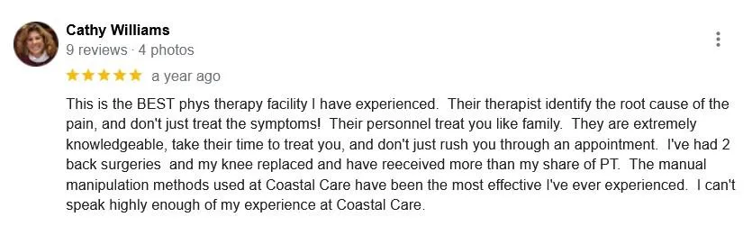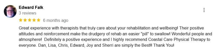 Coastal Care Physical Therapy was established due to our dedication and passion to help patients regain functional independence.